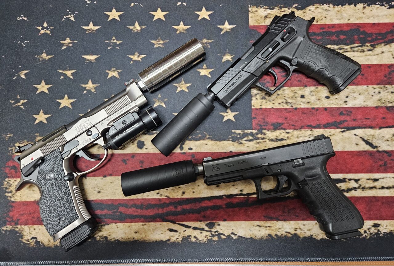 Minimum Barrel Length: None with service pistol cartridges, 8″ with .357 Magnum, .300 Blackout subsonic, .350 Legend subsonic & similar