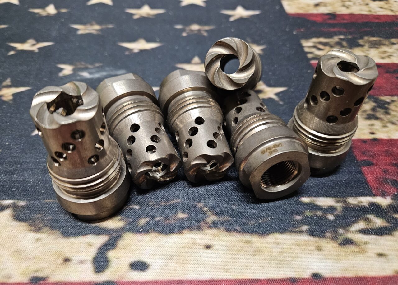 The ECCO Machine Gyrex helix port taper brake was developed to optimize blast chamber efficiency and protect blast baffles with high velocity rifle cartridges. As with any taper mount design, the taper ensures better alignment and retention than simple direct thread so your point of impact remains the same from shot to shot, and each time you remove & install the suppressor. The 1-12 UNF threads allow rapid 4-revolution installation and removal while the wide 12° included taper ensures solid mating with the fairly coarse threads.
